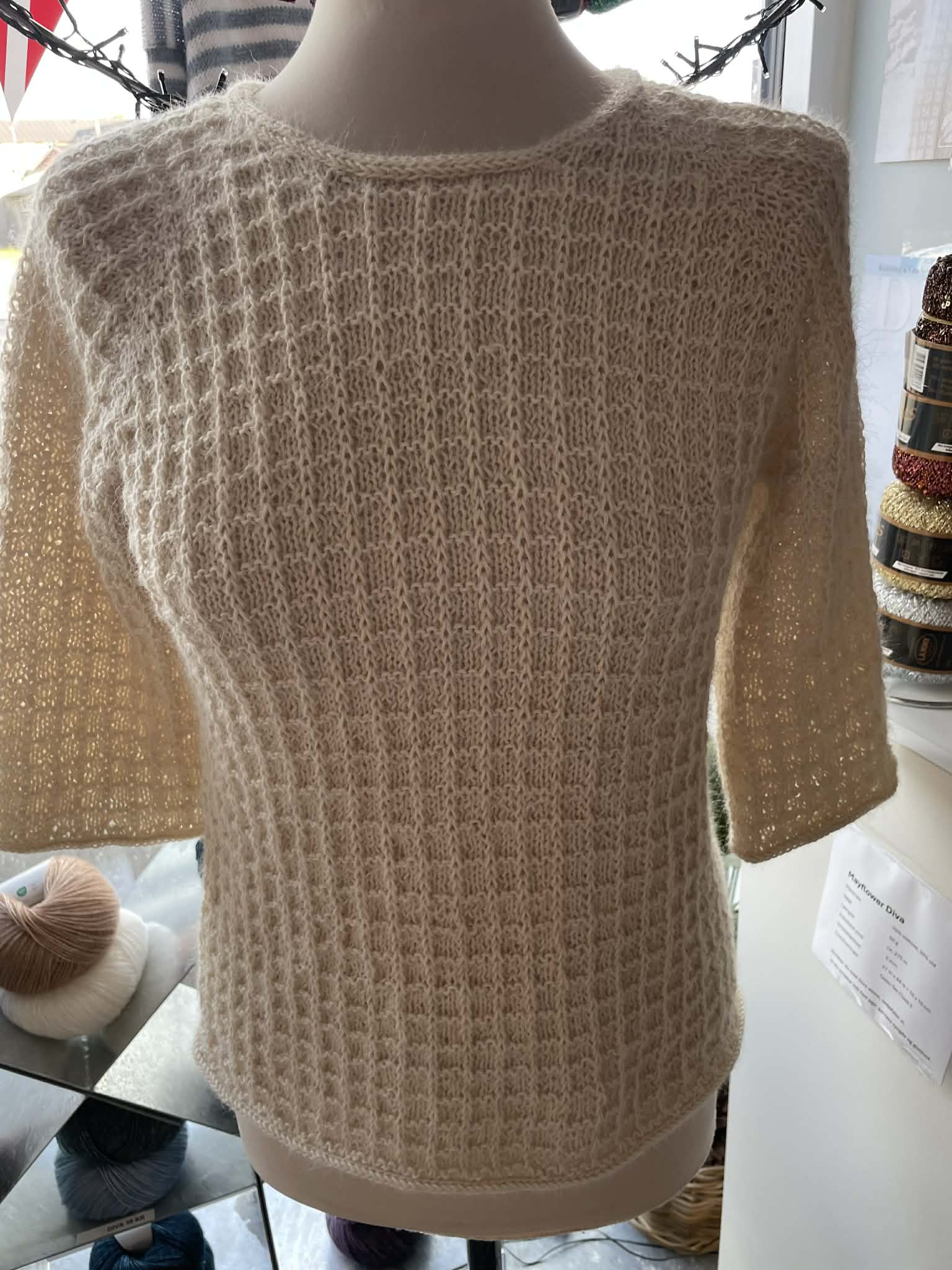 X-tern er en klassisk raglan sweater, strikket oppefra og ned i et ternet mønster som dannes ved at kombinere kendte teknikker: 1 maske løs af, 1 række vrang, og glatstrik for resten af pengene. Enkelt og effektfuldt mønster.