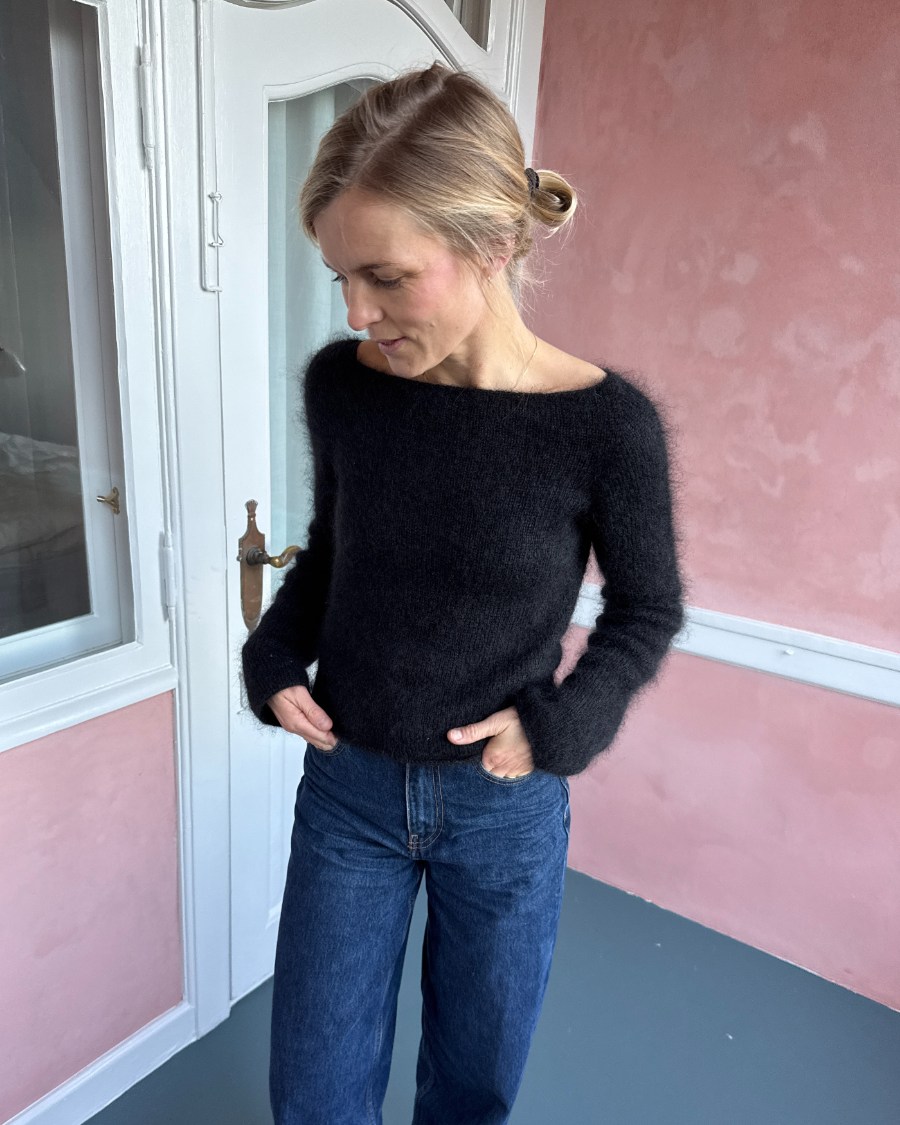 Den sorte Bea Blouse er strikket i Brushed Lace fra Mohair by Canard i farven Sort [3036].