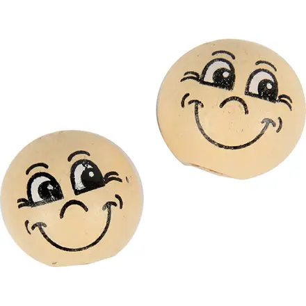 Træperle med halvboret hul, malet lys hudfarve og glad ansigt